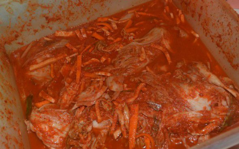 Đổ hết kim chi còn sót lại, rửa sơ với nước lạnh