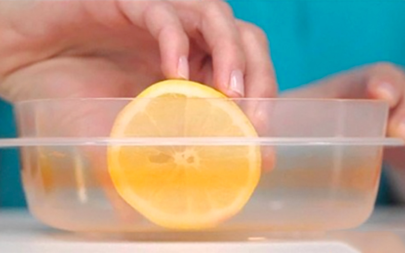 Dùng nửa quả chà xát trực tiếp lên toàn bộ bề mặt trong và ngoài của hộp