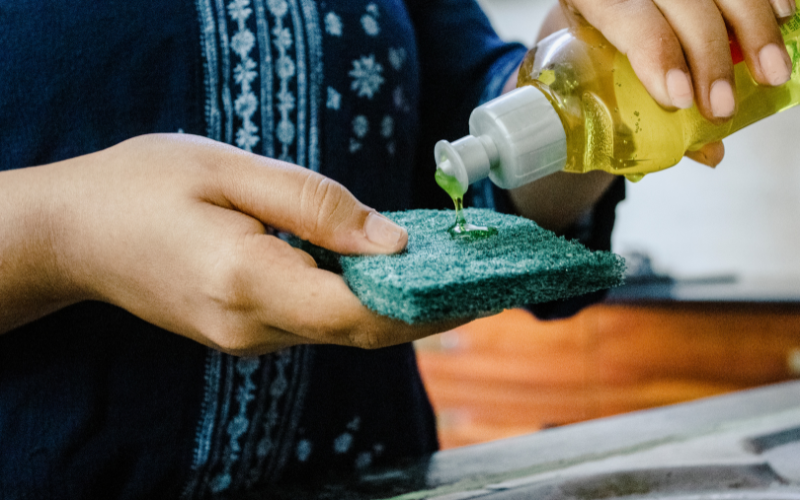 Lưu ý: Tránh dùng miếng chà nhám vì dễ làm trầy hộp, vi khuẩn bám vào lâu hơn.