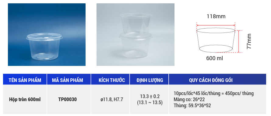 Hộp tròn TIẾN ĐỨC được sản xuất từ 100% nhựa nguyên sinh được thiết kế tỉ mỉ về thẩm mỹ và công năng sử dụng, đảm bảo tính tiện ích, thân thiện với môi trường và an toàn cho người sử dụng.