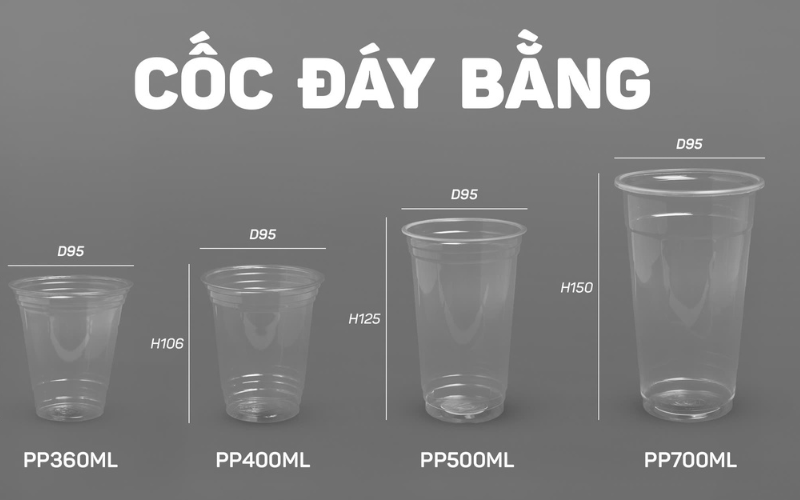 - Đủ loại ly PP, PET theo dung tích: 360ml, 500ml, 700ml, ly nắp bằng, ly nắp cầu