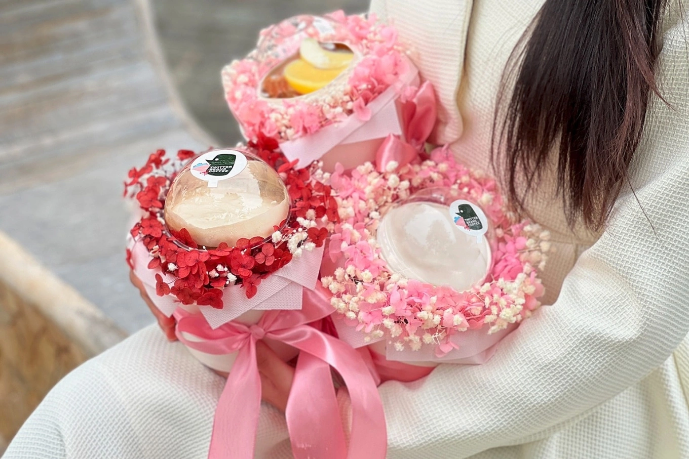 Các quán đồ uống có thể thiết kế combo ly nước + hoa + thiệp chúc mừng, đóng gói gọn gàng để khách hàng dễ dàng mua mang đi. Đây là hình thức quà tặng vừa đẹp mắt vừa phù hợp với nhiều đối tượng như bạn gái, đồng nghiệp hoặc bạn bè.
